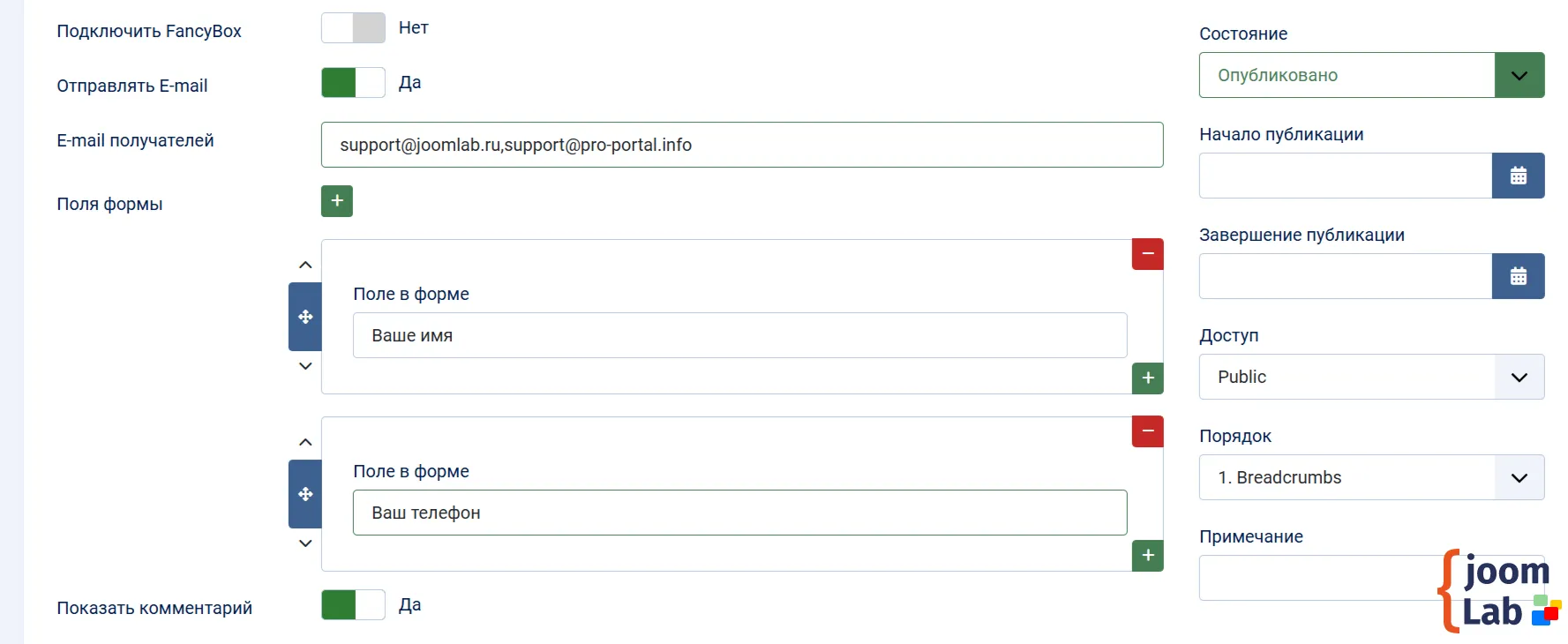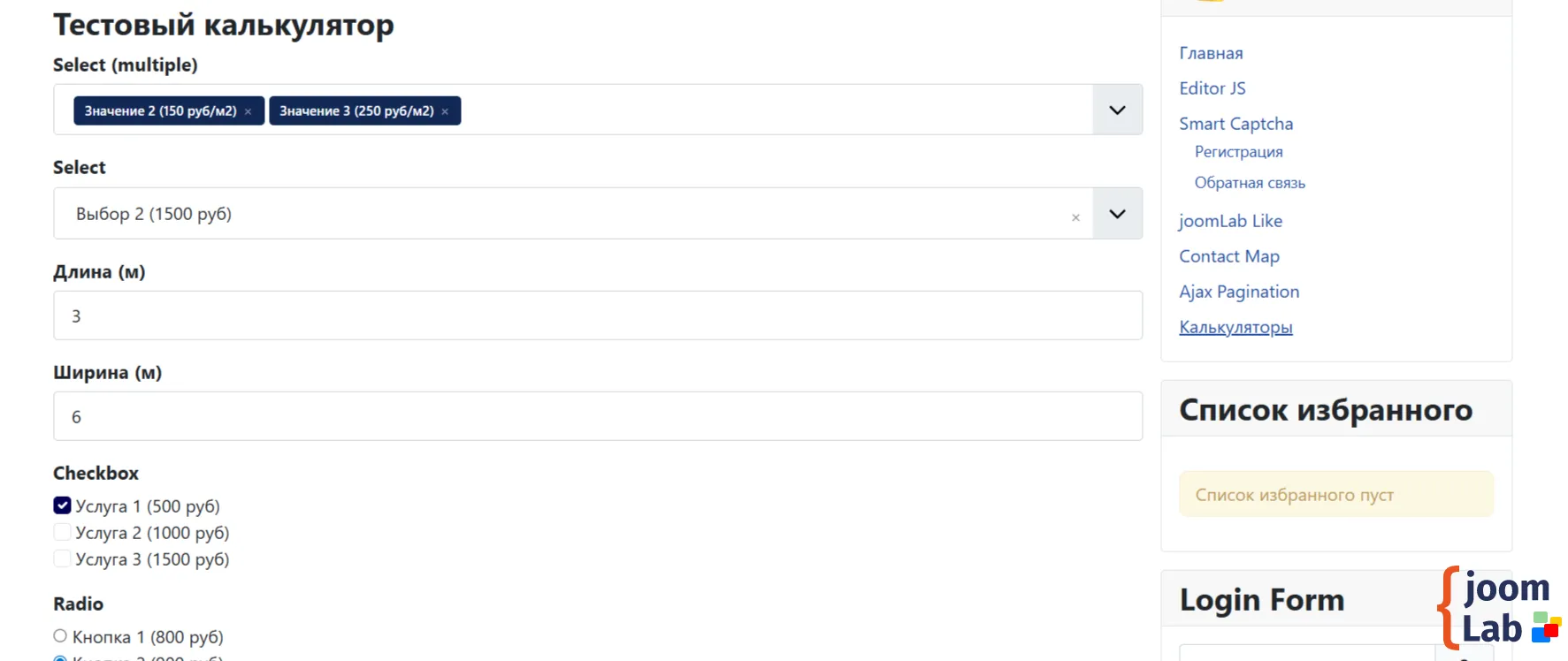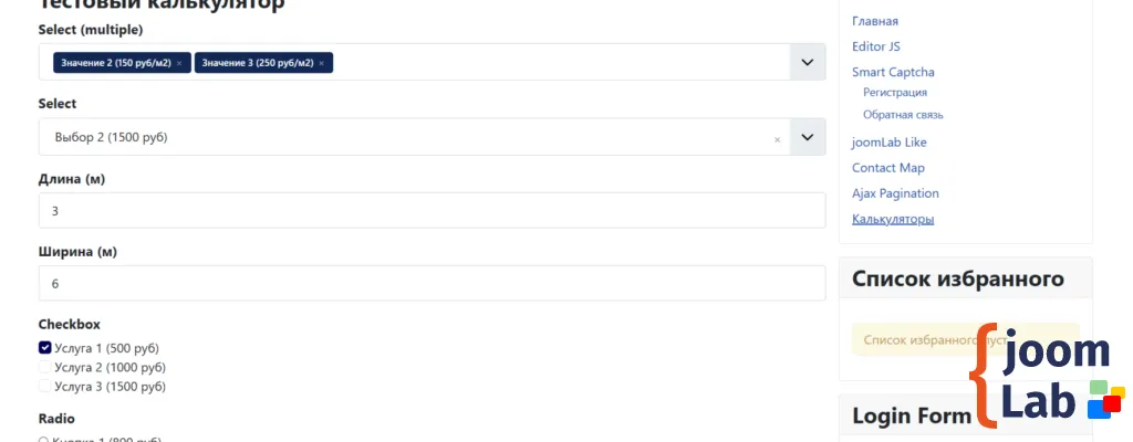 Модуль joomLab Calculator позволит создавать простые калькуляторы на Вашем сайте под управлением CMS Joomla и получать расчеты от пользователей на E-mail.