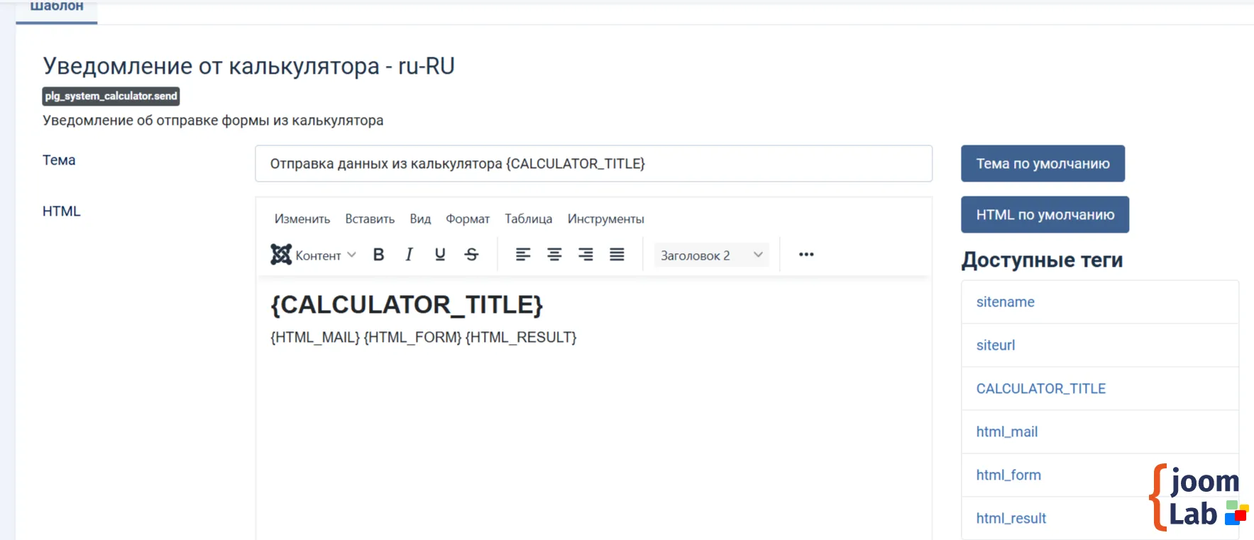 Модуль использует стандартный функционал шаблонов писем Joomla. Это позволит Вам легко настроить общий текст писем, используя переменные.