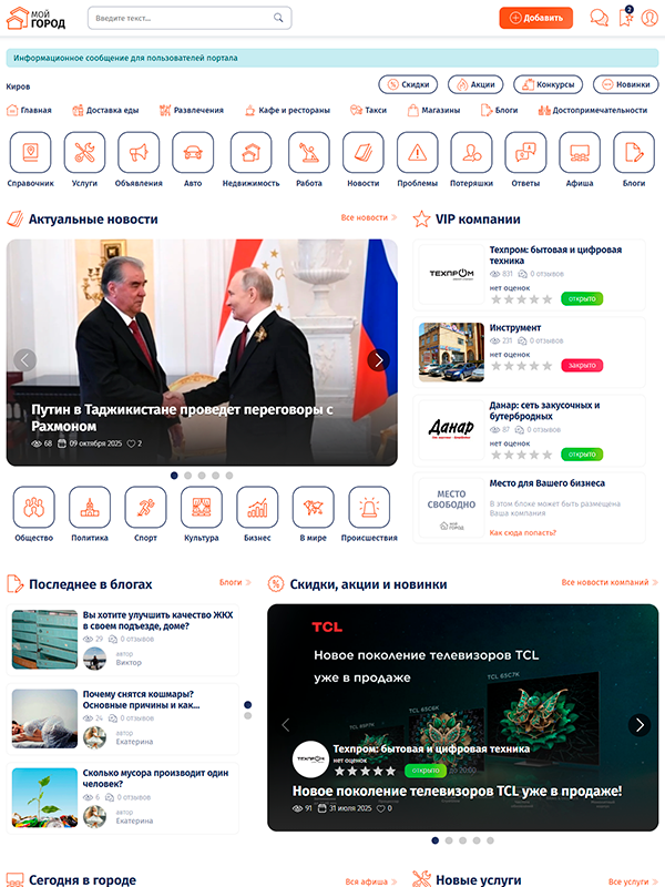 Полноценный, а главное простой и очень функциональный информационный городской портал на системе управления CMS Joomla, который имеет все необходимые разделы и все необходимые функции монетизации.